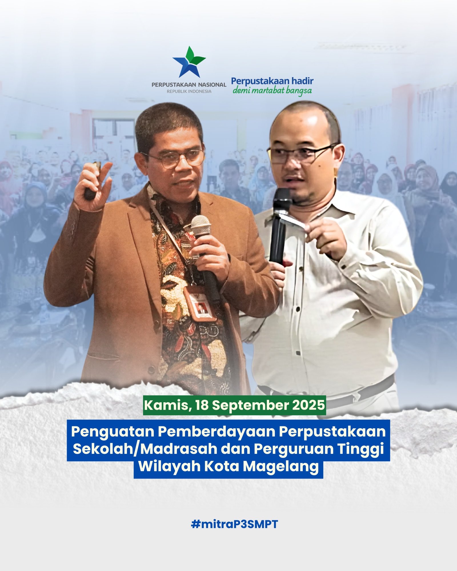 Bukittinggi (16/10/2025) – P3SMPT Perpusnas menyelenggarakan kegiatan Penguatan Pemberdayaan Perpustakaan Sekolah/Madrasah dan Perguruan Tinggi Wilayah Kota Bukittinggi. Kegiatan berlangsung di UPT Perpustakaan Proklamator Bung Hatta Perpusnas RI, Kota Bukittinggi. Sejumlah…