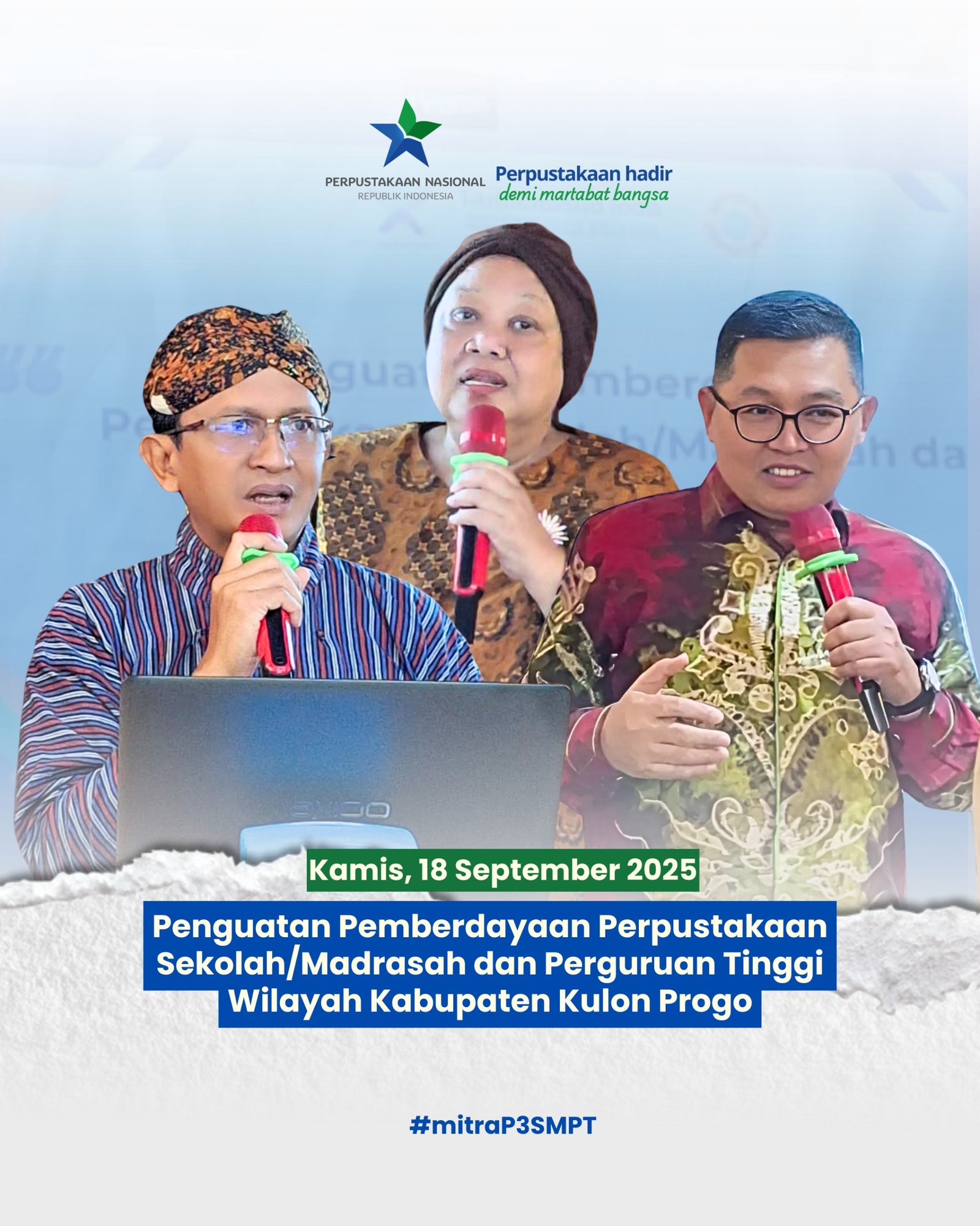 Kulon Progo (18/09/2025) – Perpustakaan Nasional RI melalui P3SMPT melaksanakan kegiatan Penguatan Pemberdayaan Perpustakaan Sekolah/Madrasah dan Perguruan Tinggi di Kabupaten Kulon Progo. Acara berlangsung di Gili Resto & Caffe Kulon…