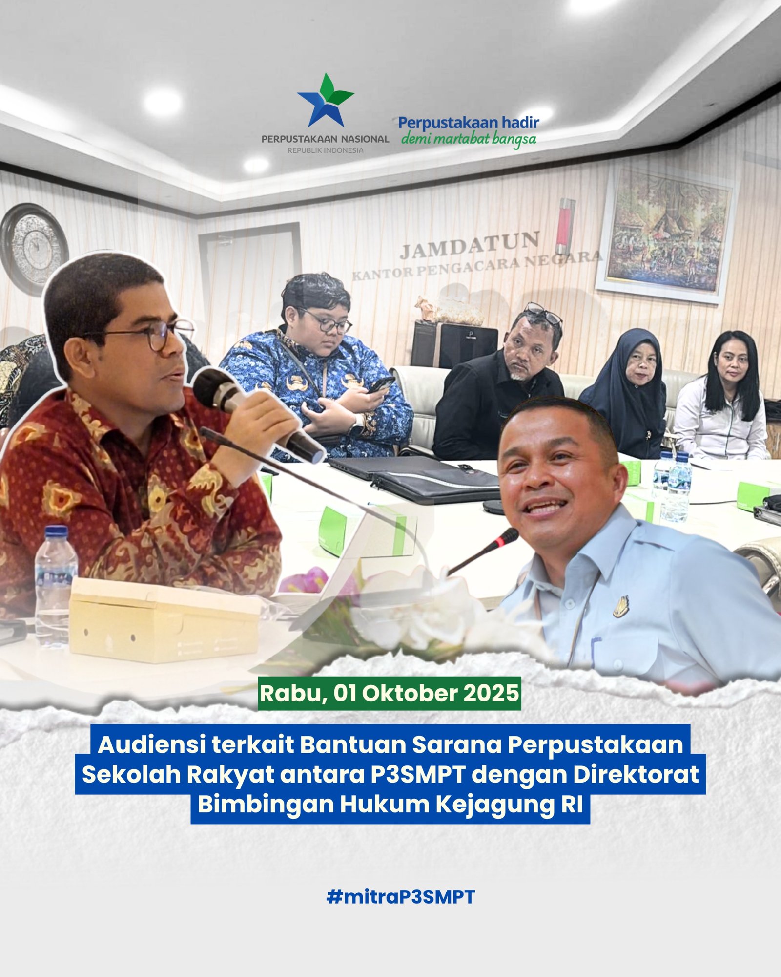 Bukittinggi (16/10/2025) – P3SMPT Perpusnas menyelenggarakan kegiatan Penguatan Pemberdayaan Perpustakaan Sekolah/Madrasah dan Perguruan Tinggi Wilayah Kota Bukittinggi. Kegiatan berlangsung di UPT Perpustakaan Proklamator Bung Hatta Perpusnas RI, Kota Bukittinggi. Sejumlah…